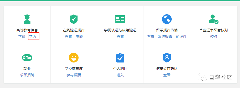 ③登录成功后,点击选择“ 高等教育信息 ”—“ 学历 ”。