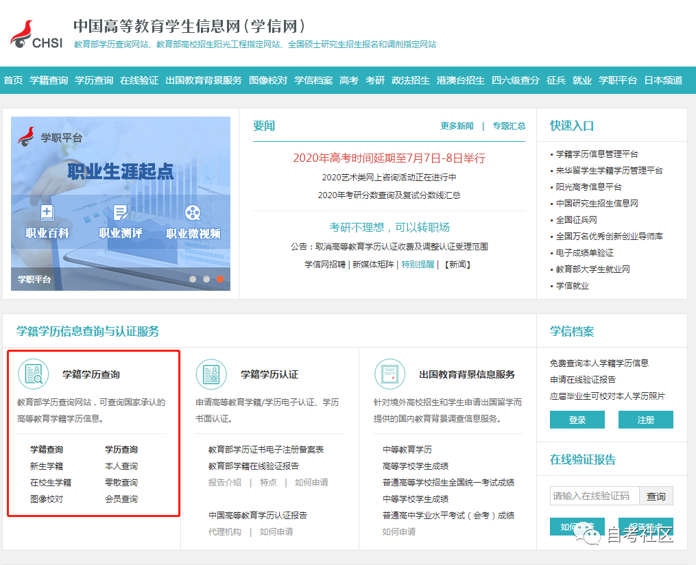 那是因为学信网只能 查到 个人的学籍和学历等相关内容,但是自考没有 学籍 ,只有考籍,因此,考生在 毕业前 是无法在学信网上查询到学历信息的。什么,自考竟然是没有学籍的?