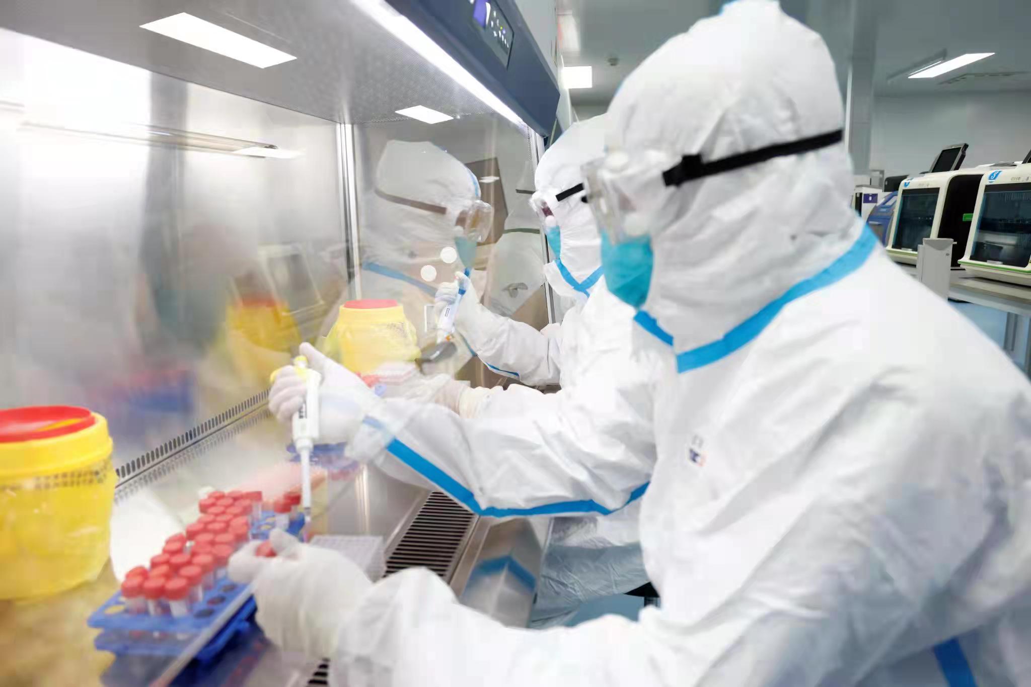 沿着实验室的清洁通道,记者透过样本接收区的可视窗,只见4名检测人员穿着防护用品对送来的新冠核酸检测样本进行消毒、拆包、震荡、排版;样本制备区10台提取仪和扩增区的18台扩增仪正在全速运转……“整个检测环节繁琐复杂不说,还有加样等步骤无法省时,必须手工完成。”先后赴南京、扬州等地支援的检验人员姜曦说,“在这负压密闭的工作环境里,我们要做到三级防护,必须严格流程和标准,不能有丝毫疏漏。稍有不慎,就会给自身健康带来危险。”