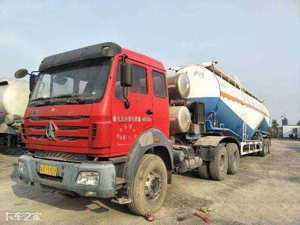 笔者当地有使用北奔NG80牵引车来作为散装水泥运输,而且是LNG版本的车型,这款北奔NG80牵引车上的驾驶室正是以早期引进的奔驰NG80底盘基础上进行了设计升级而来。