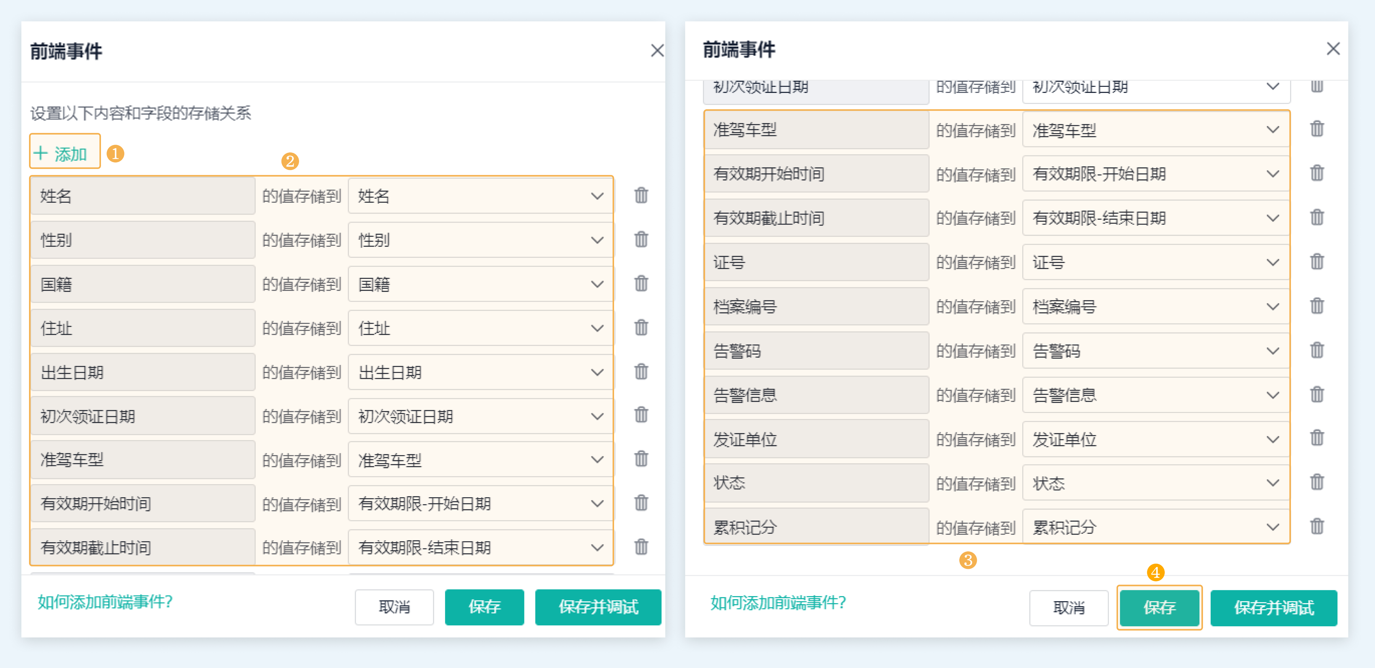 - 驾驶证:设置为「字段值」,即「驾驶证截图」字段。