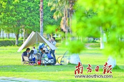 清明假期里,佛山各大公园、滨水绿地随处可见露营野餐的人。 南方日报记者 戴嘉信 摄