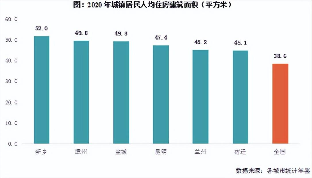 新乡、漳州、盐城、昆明、兰州和宿迁等6城市场需求饱和,城镇居民人均居住面积均超45平方米。与之相应,全国的平均水平是38.6㎡。