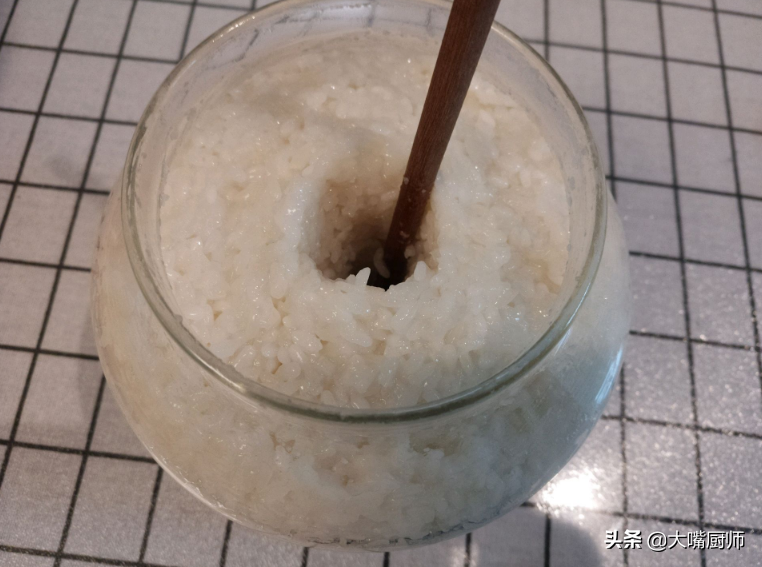 6、一般发酵36个小时就可以了,如果温度比较低,就需要2~3天的时间。发酵好的米酒,放在冰箱里冷藏保存,能放2个月。