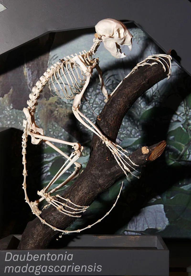 △指狐猴的骨骼,能看出其手指是多么长。图/Wikipedia