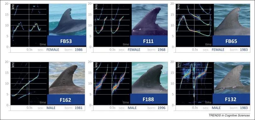 海豚使用口哨来识别伙伴, 每只海豚都有不同的口哨声 ,这些口哨对每只海豚都不同,以此来呼唤称呼不同的朋友。要知道,绝大多数动物都没有特定的识别方法来认识每一位伙伴。