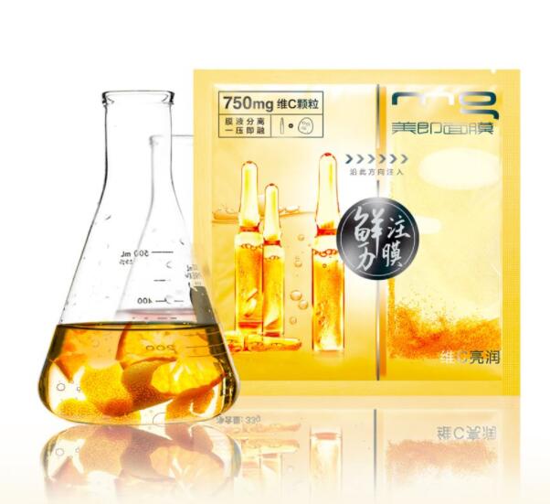 美即重新定义新鲜面膜,推出首款新鲜封存鲜纯维C颗粒的安瓶面膜,一压即融,卓效抗氧,横扫倦容,肌肤活起来!维C在干燥密封的情况下可长时间的保持生物活性,可一旦溶解于水或接触空气后容易氧化流失。因此,美即专门采用膜液分离包装,真空保鲜,日日锁鲜。一摇一挤,即开即用,生产日期由你决定,让你亲手开启鲜活年轻肌!还在被初老问题所烦恼的你该给肌肤下点“猛药”了!新鲜安瓶原液即刻启用,让你拥有一张弹润、细嫩、透亮的脸蛋子,用完小脸水嘟嘟。一夜回春,唤醒水光肌,可爱到冒泡泡。