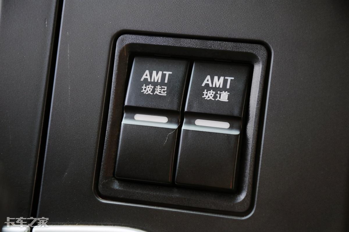 方向盘右侧紧挨的中控区域布置有AMT转换按钮:AMT坡起开关在车辆上坡起步时使用,可以防止溜车;AMT坡道开关在车辆爬坡时使用,可以使变速箱保持低挡位,爬坡力从而更充沛。