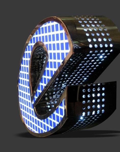 我们广告公司有另外一种常见的分组发光字——侧面冲孔正面亚克力发光字。这一种发光字发光效果均匀,质量好,是分组发光字里最时尚,最经典的一种。我们可以从以下这种图片可以看出来这一种分组发光字是怎么样做的了。