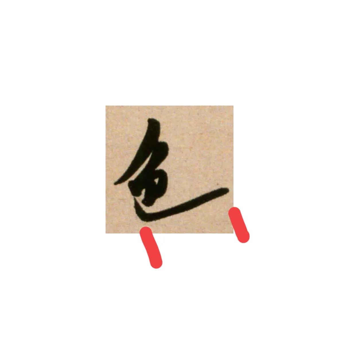 这样就能理解蜀素帖中的这个色了。写好点之后再写竖弯钩。
