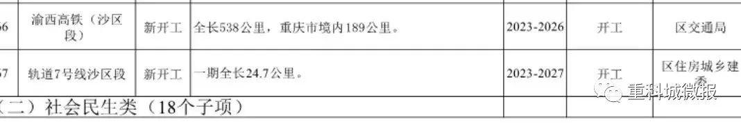 日前,沙坪坝最新发布了2023年重点项目名单,其中包括沙区段 轨道交通7号 、27号、15号线建设、沙区段渝昆、成渝中线高铁建设以及陈家桥医院扩建工程、联芳园区规划小学等项目,年度计划投资246.7亿元。