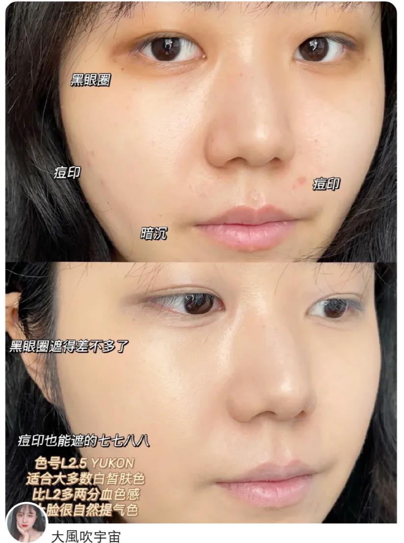 缺点:轻微的红血丝和暗沉可以很好的提亮,太严重的痘痘、痘印还是需要靠遮瑕膏