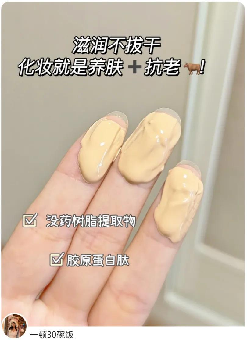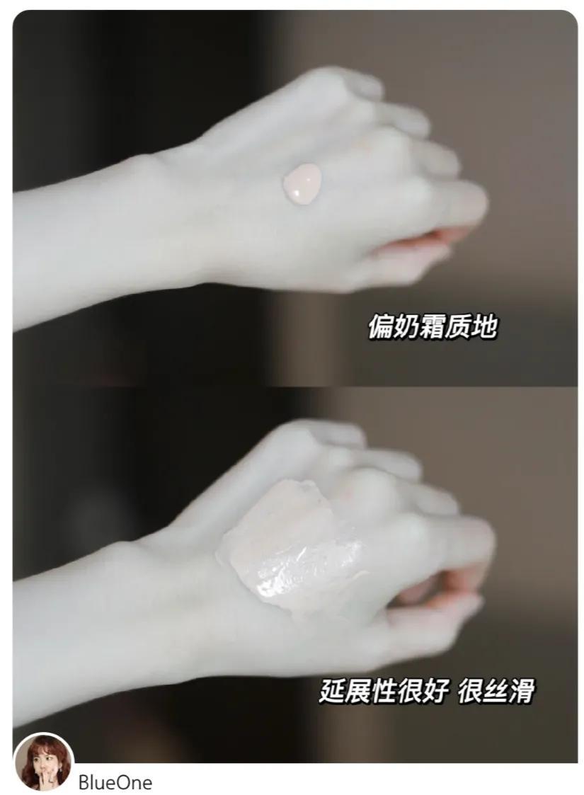 质地:奶霜质地,有流动性,但非常润,延展性满分,同样随便拍都可以很均匀