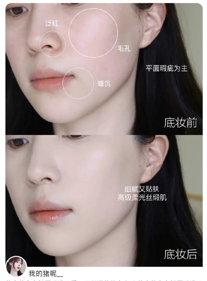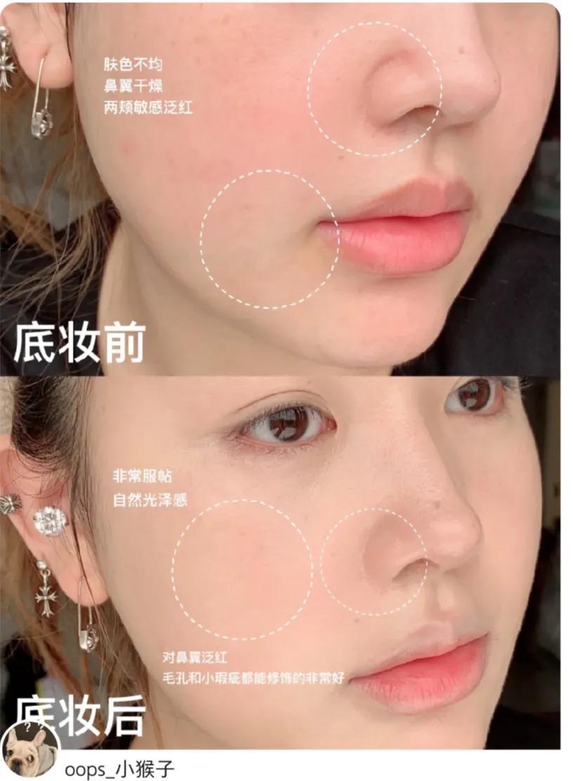 优点:奶油肌妆效很高级,而且非常滋润轻薄,干皮基本不会卡粉