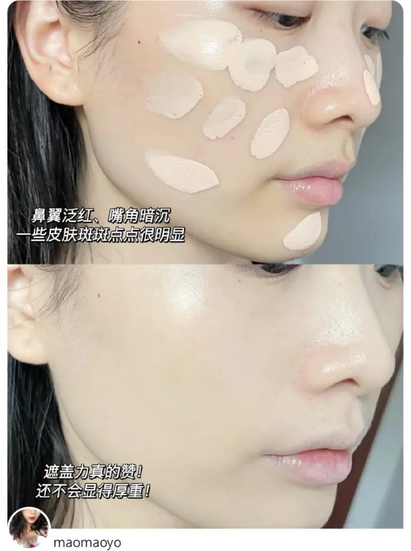 它主打轻薄,打造伪素颜妆感,所以遮瑕能力只有百分之三四十左右