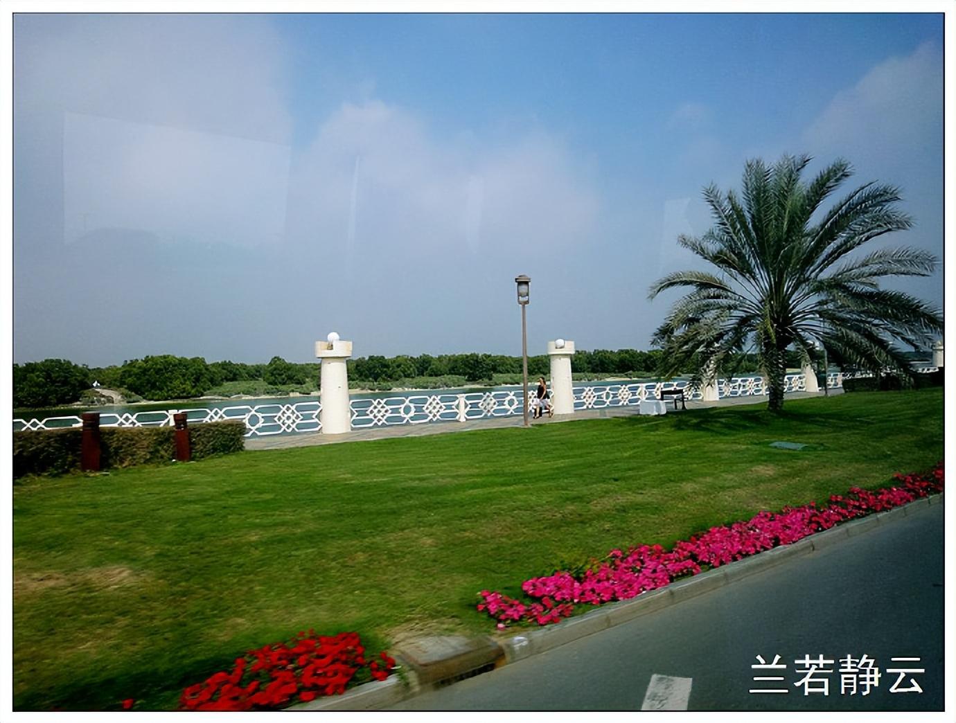 从出迪拜到进入阿布扎比市中心,一路上都是这样的树林,看着它终于能感受到为何阿布扎比的知名度不及迪拜了。当年阿联酋出口第一桶原油后,财源滚滚而来,这时不同的酋长做出了不同的建国决策。迪拜用大量金钱打造各式各样的全球第一,以此来吸引游客推动经济发展,而阿布扎比酋长则耗费大量金钱来植树造林,将沙漠变成绿洲,改造整个国家的自然环境。