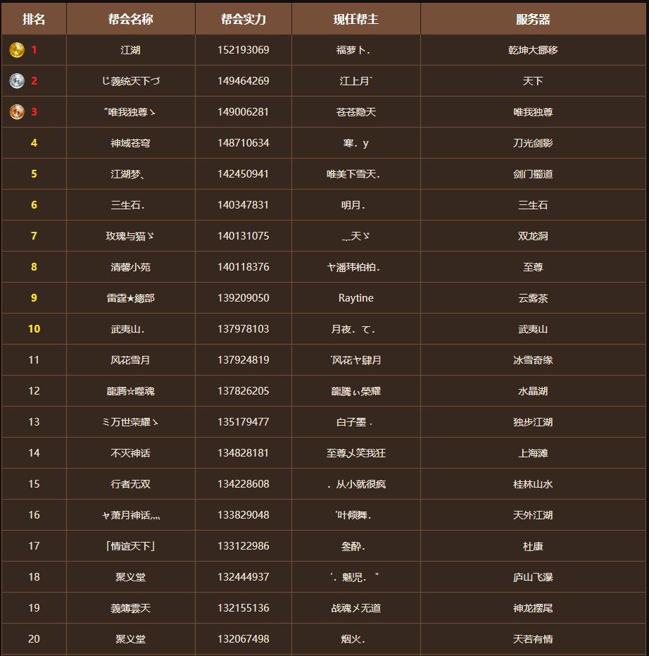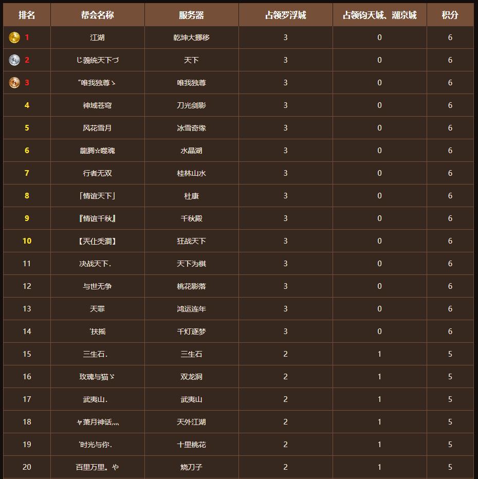 目前连续三次拿下罗浮城的帮派共有13个,与帮派战力全服排行榜的名次还是有些区别的。