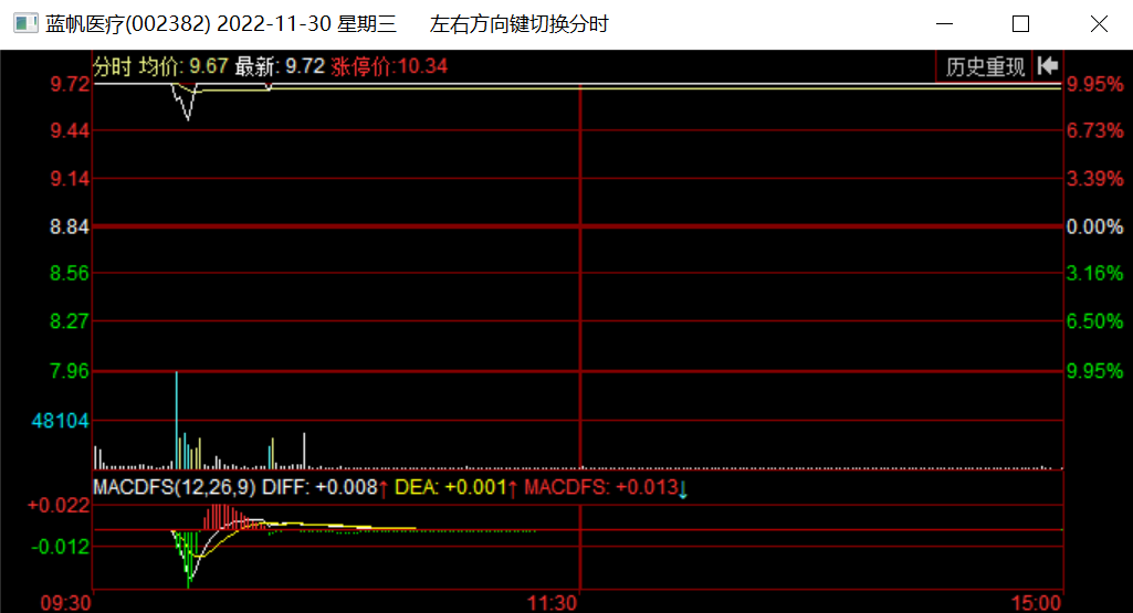 二级市场表现看,蓝帆医疗股价次日一字涨停,盘中短暂开板后迅速回封直至收盘。
