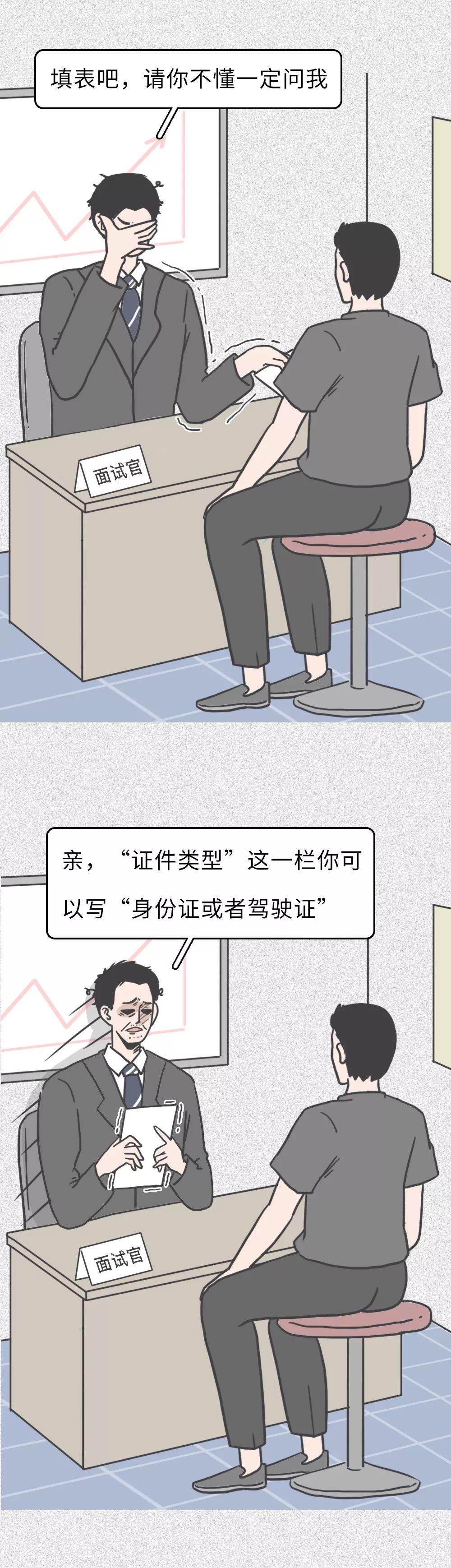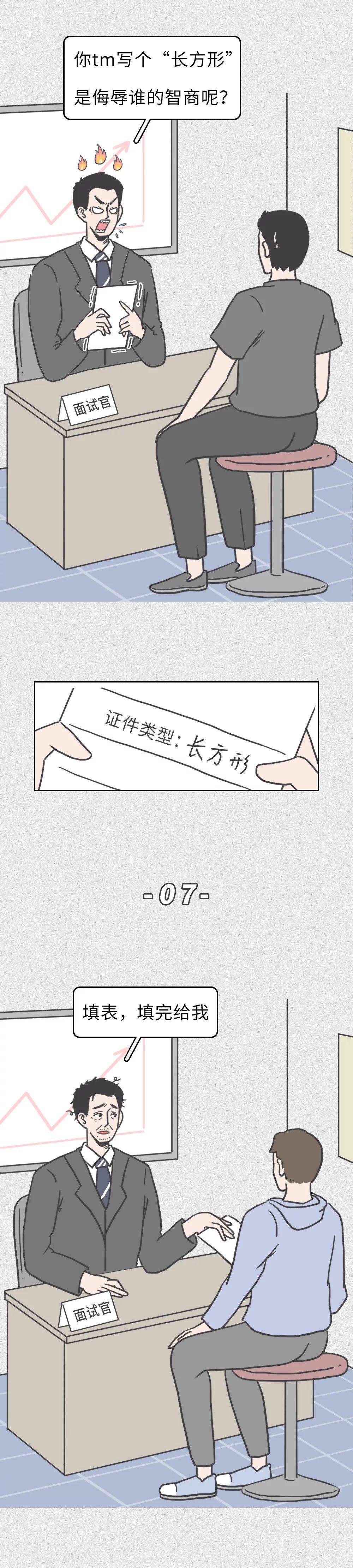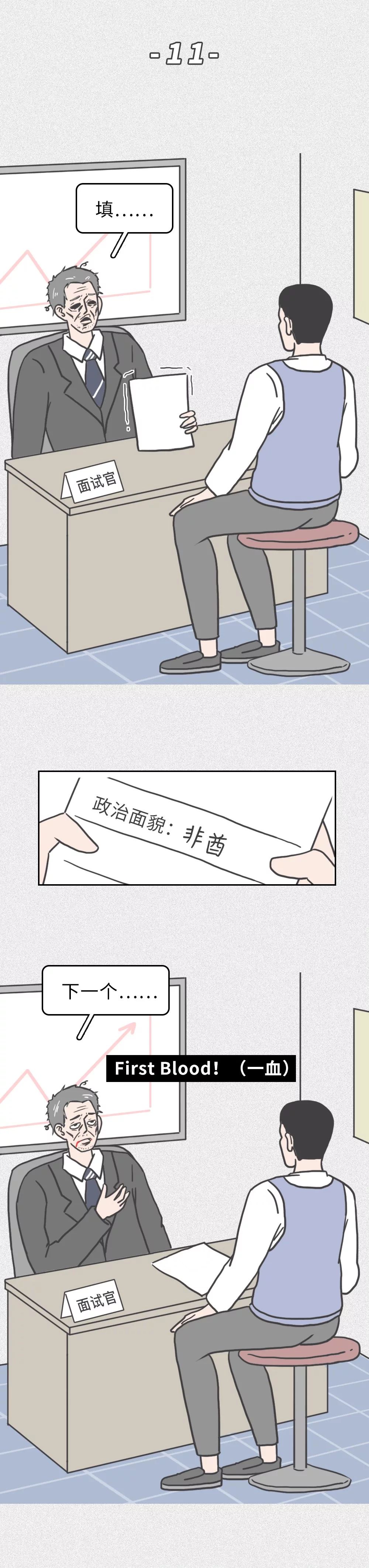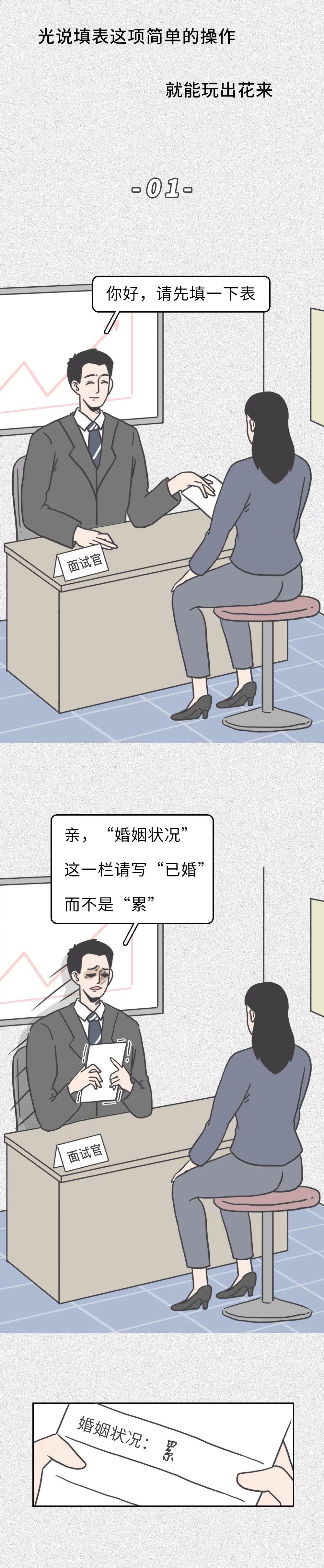又到毕业季啦!HR们最头疼焦虑的时候到了!坐在写字楼里,吹吹空调,看看电脑,选选简历,跟人打打交道……你以为hr的工作这么轻松吗?对于他们来说,痛苦的其实不全是日常的闲碎工作,而是和各种各样的选手打交道,应对他们的各种突发状况和奇葩脑洞。简简单单的一项填表,就能被他们玩出花来。其中出错率比较高的选项有: 本人成分 :可填“职工”或“学生”。请不要填“肉”“水”“碳酸饮料”。 奖惩记录 :可填“无”或“何时何地得过什么奖项”。请填写官方认证过的奖项,类似“一元夺宝中获得阿萨姆”“口红机里面获得过口红”这种奖项,你自己偷着乐就可以了,没必要告诉HR。 政治面貌 :常见有“党员/共青团员/群众/……”。请不要填“非酋”“浓眉大眼”“祖国的花朵”“平民”“长脸”“圆脸”,放过HR吧!他还只是个孩子啊!希望各位小可爱去面试前,基本的功课还是要做一做的。虽然机灵活泼是好事,但也不!能!这!么!皮!啊!每一行都不容易!多一点理解配合!世界会变得更美好!