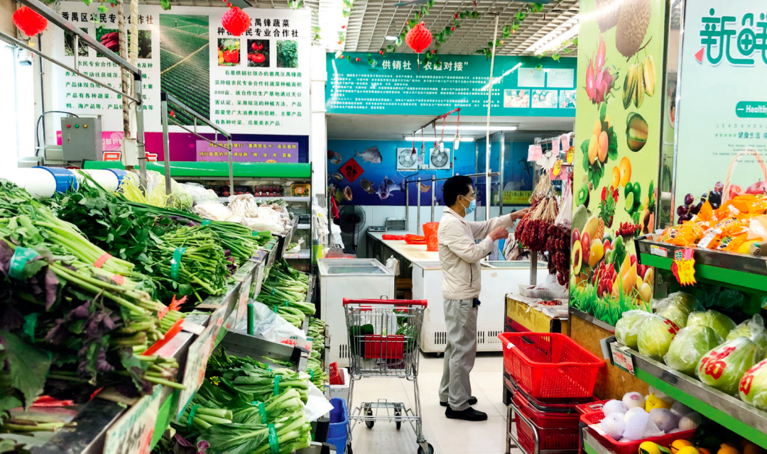 △广州番禺区石碁供销社内果蔬新鲜绿色,便宜实惠。番禺区供销社供图