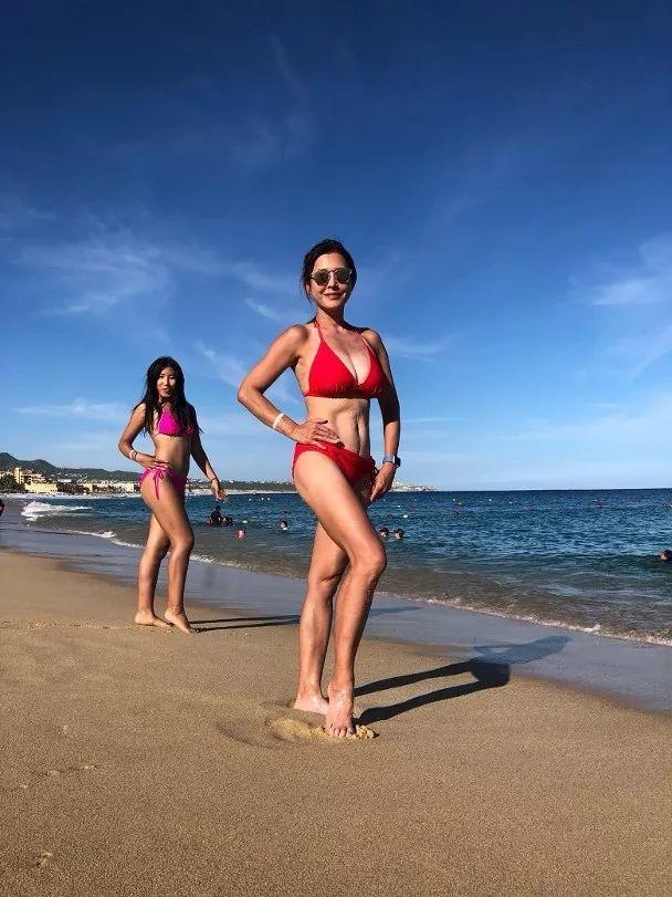 在相中的李婉华戴上太阳眼镜,女神范十足,虽然年届五十,但依然活力十足。而在另一张相中,李婉华的女儿也穿上桃红色的泳装和妈妈一前一后大摆pose,女儿完全遗传了妈妈的好身材,不少网友表示:像两姐妹呀!