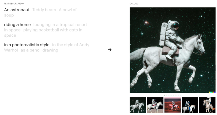 在这些模型当中,OpenAI 的 DALL·E 是最著名的一款。该模型一代于2021年推出,今年刚刚更新到了二代。用户只需提供 自然语言描述,模型就能够生成非常写实 (photorealisitic) 的图片。