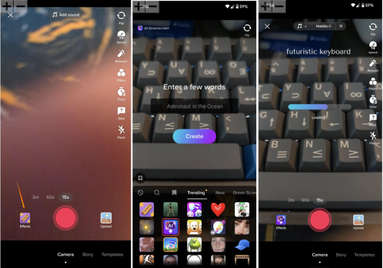 在 TikTok 的特效菜单下,最近增加了一个名叫“AI 绿幕” (AI Greenscreen) 的新选项。
