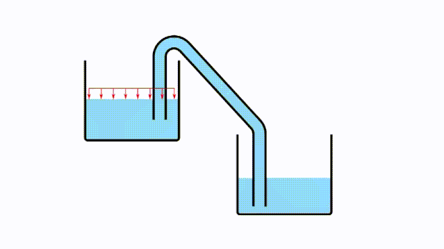 许多不明白这一原理的人,会惊讶于上端容器当中的水竟然能够自己朝着管子中爬升,就像是有什么东西在上方“吸引”它一样。而实际上, 虹吸只是利用了两个容器当中的液体压力差而已,真正的幕后推手是大家都熟悉的“大气压”。