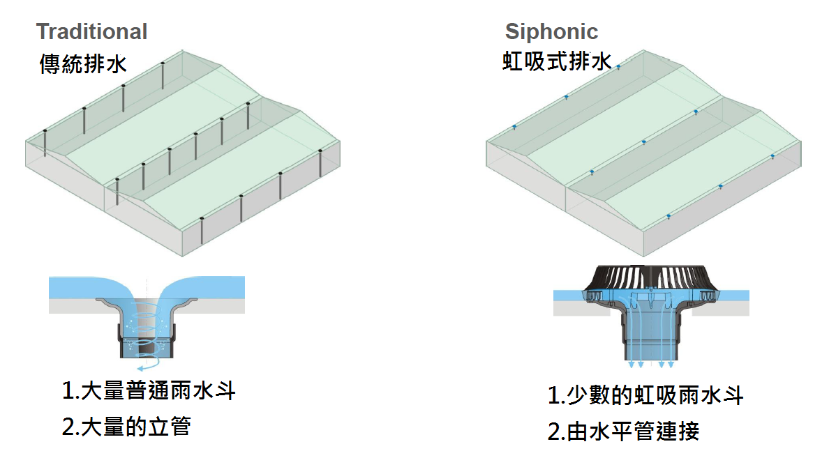 其次就是 虹吸雨水斗 ,它的原材料是304不锈钢。这一装置的反涡流能力很强,具体由铝合金、不锈钢夹和不锈钢底构成。一般来说,这种装置都会安装在屋面雨水管道的入口位置,可以有效地防止空气进入排水系统。