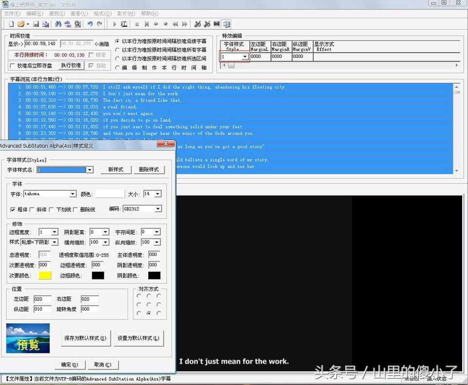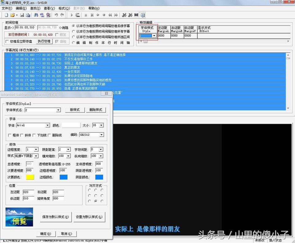 3:图3...打开另存的字幕文件,格式——ASS样式定义——新样式——字体效果你可以随意设定。
