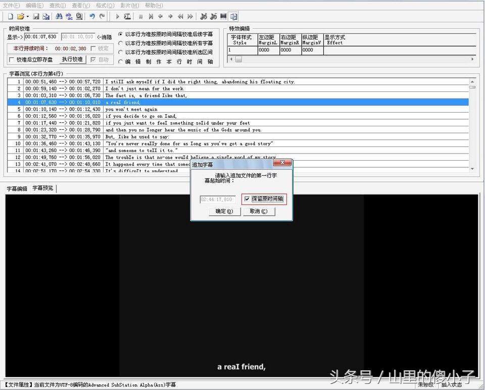 如果发现字幕时间不准, 也可以利用SrtEdit调整时间轴。