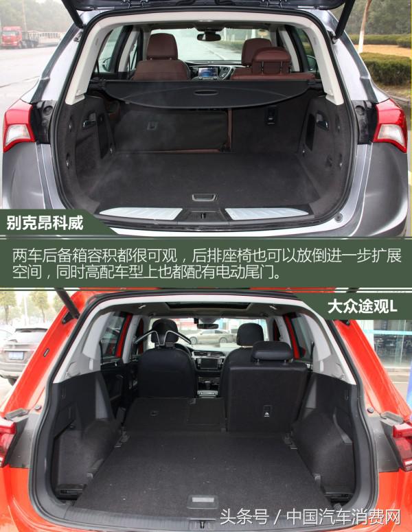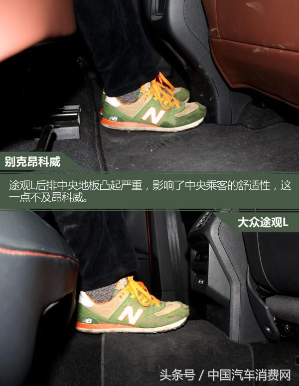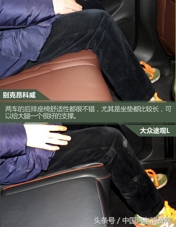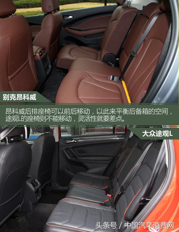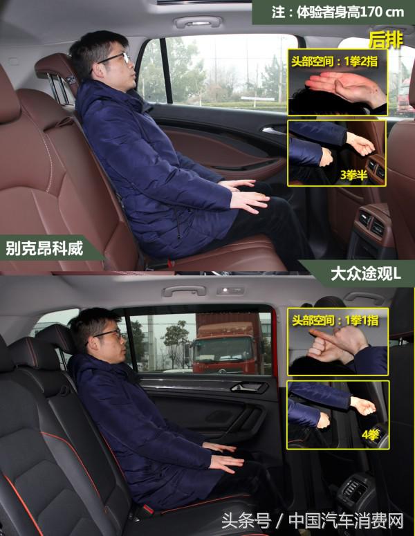 昂科威后排头部空间为4指,腿部3拳半左右。途观L后排交出了头部1拳1指,腿部4拳的成绩,后排空间明显要优于昂科威。不过途观L后排中央地板凸起严重,影响了中央乘客的舒适性,这一点不及昂科威。