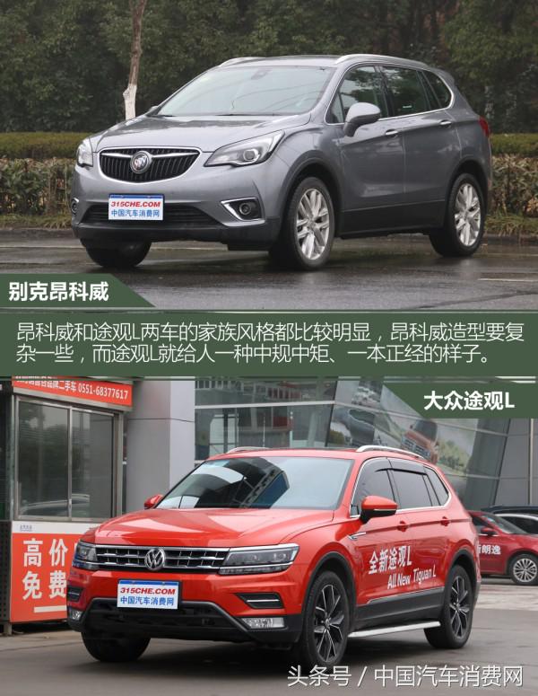 别克昂科威和途观L都是典型的城市SUV,各自的家族特征都挺明显。昂科威整体造型更为复杂,而且线条要圆润很多。途观L就是一副中规中矩的形象,线条相比之下要略显犀利一些。