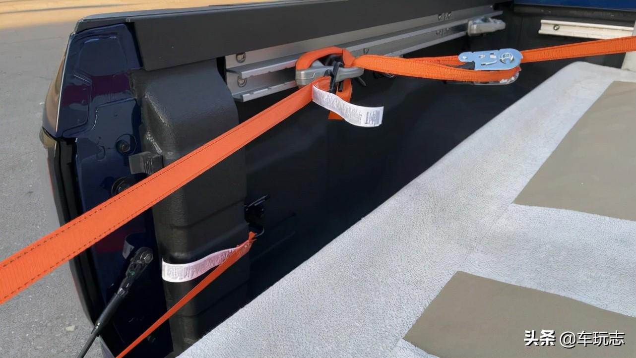 无论如何,我们收起系带并固定好沙发,使其不会移动。Nissan 的 Utili-Track 系统在完成这项任务时非常方便,因为您的所有理论系紧点都可以移动到床上最适合负载的任何位置。只需简单地转动旋钮,您就可以将夹子沿轨道滑动到任何位置,并且旋钮可以轻松收紧,确保以最安全的方式固定负载。使用该系统可以轻轻松松地移动巨型沙发,而且还展示了无论床位大小,任何类型的卡车在生活中的便利性。最后,如果您需要在晚上移动任何东西,LED 床灯使能见度完全不成问题。