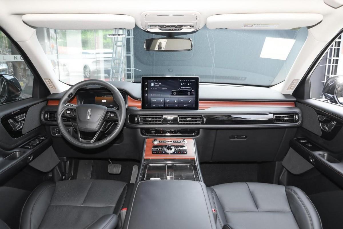 内饰方面,T字型的中控台布局,大量的真皮材质包裹搭配镀铬和钢琴烤漆,通过精致的缝线组合,突出整车的豪华感,而12.3英寸全液晶仪表和12.8英寸悬浮式中控屏的配置,加上第三代SYNC+智行互联系统等智能化功能,兼顾了科技与豪华。
