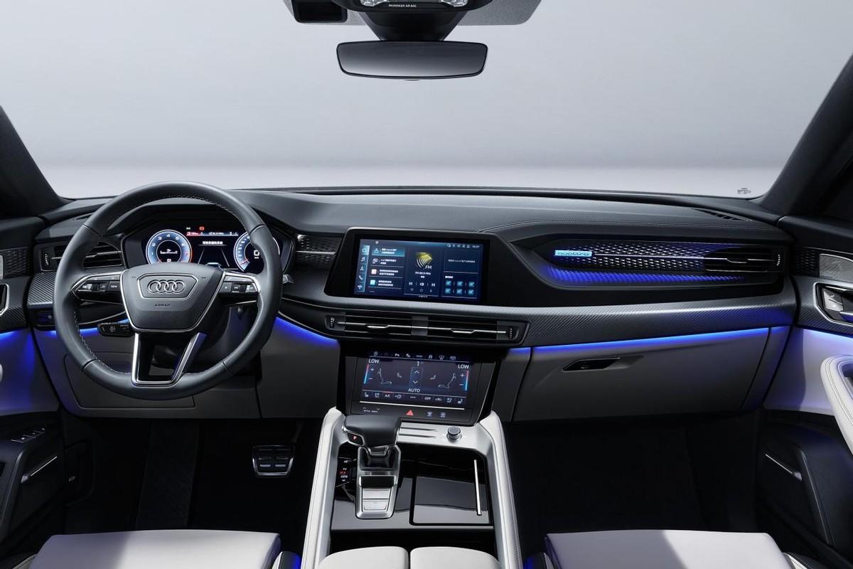 当然,在内饰方面,6座的设计搭配上大面积的皮质包裹工艺覆盖,第二排座椅还支持加热、通风和按摩功能,尽显尊贵享受。同时搭配了12.3英寸全液晶仪表盘、10.1英寸中控屏、8.6英寸中控下屏,共同组成三联屏设计,智能上并搭载了奥迪Connect车机系统,语音识别控制、卫星导航等科技功能。