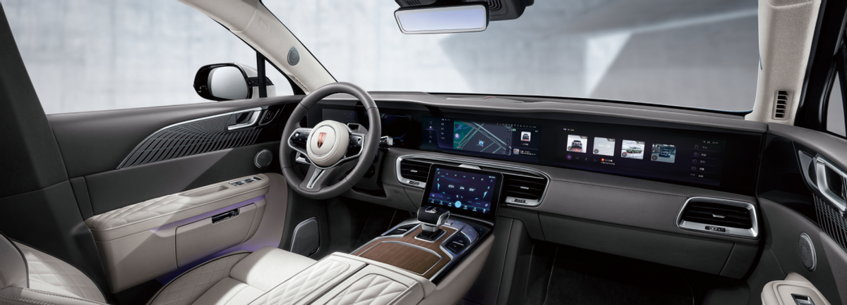 内饰方面,16.2英寸的全液晶仪表采用贯穿式的屏幕设计,同时下方还配备了中控屏幕,大量的真皮材质使用,并且在细节位置加入实木、钢琴烤漆等材质,提升了整体的豪华感。智能方面,搭载包括但不限于面部识别功能、检测驾驶员身体状态等功能。