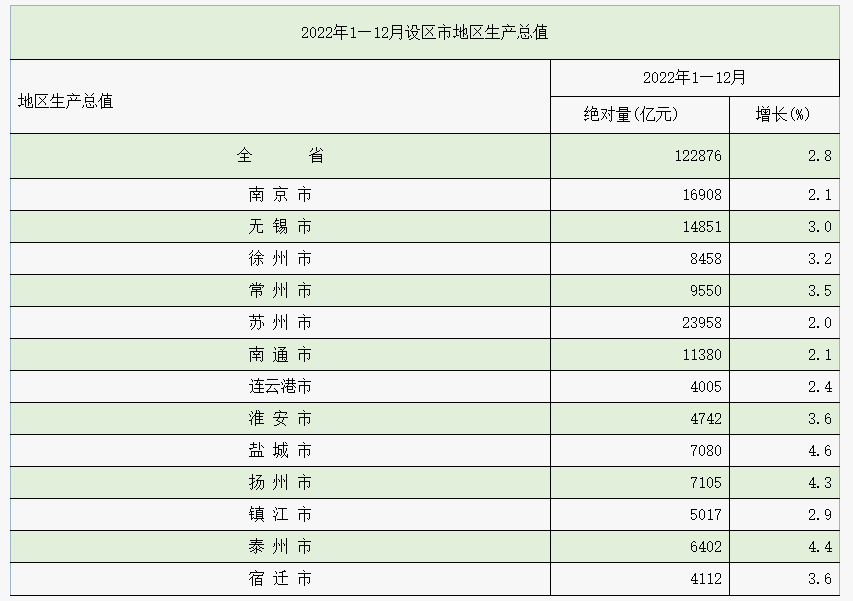 江苏gdp(2022年江苏13市gdp均在4000亿元以下只有淮安和连云港)