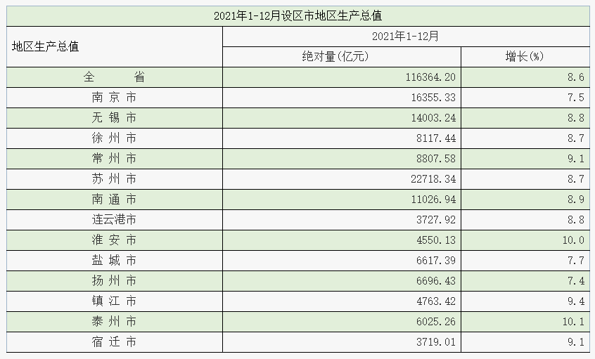 近日,江苏省统计局公布了2022年1—12月设区市地区生产总值,江苏13市的GDP数据也随之全部揭晓。