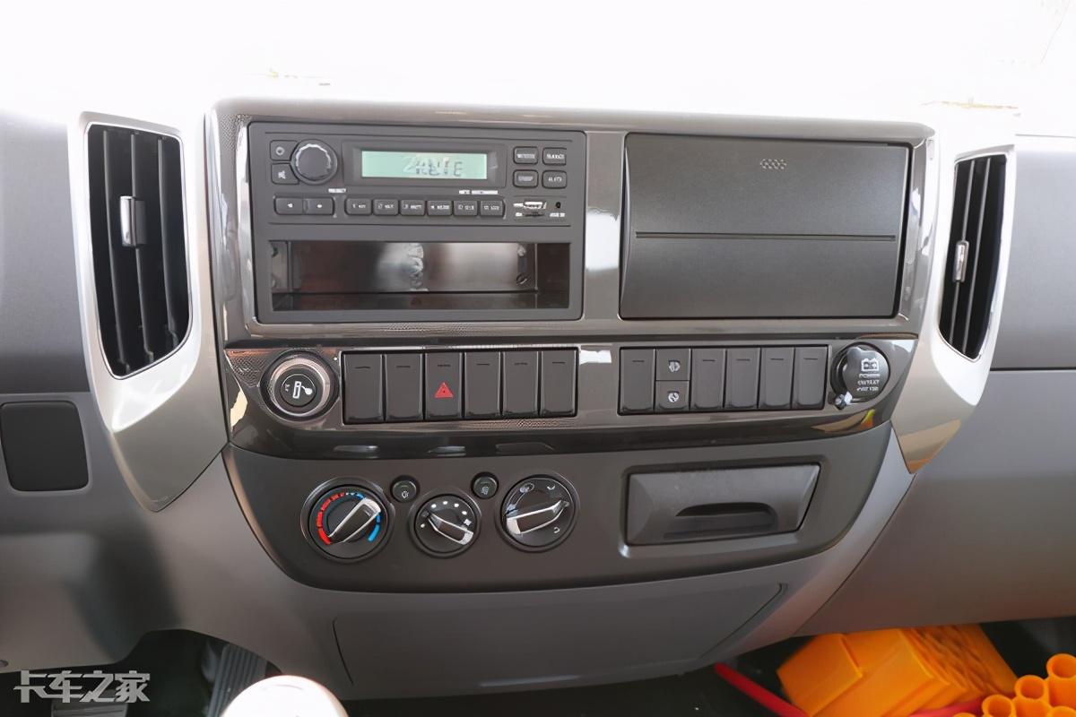 才做台采用长直线分割,各个功能区域划分明显,但缺点是看上去较为简单。内饰采用黑色为主色调,辅以银色饰板及镀铬装饰,让他看上去没那么单调。同时这台车的驾驶室宽度达到了2030mm,驾驶室内空间得到充分的保证。