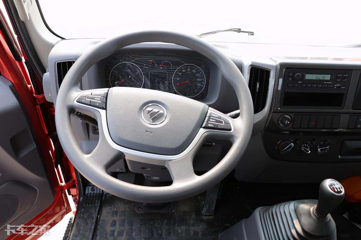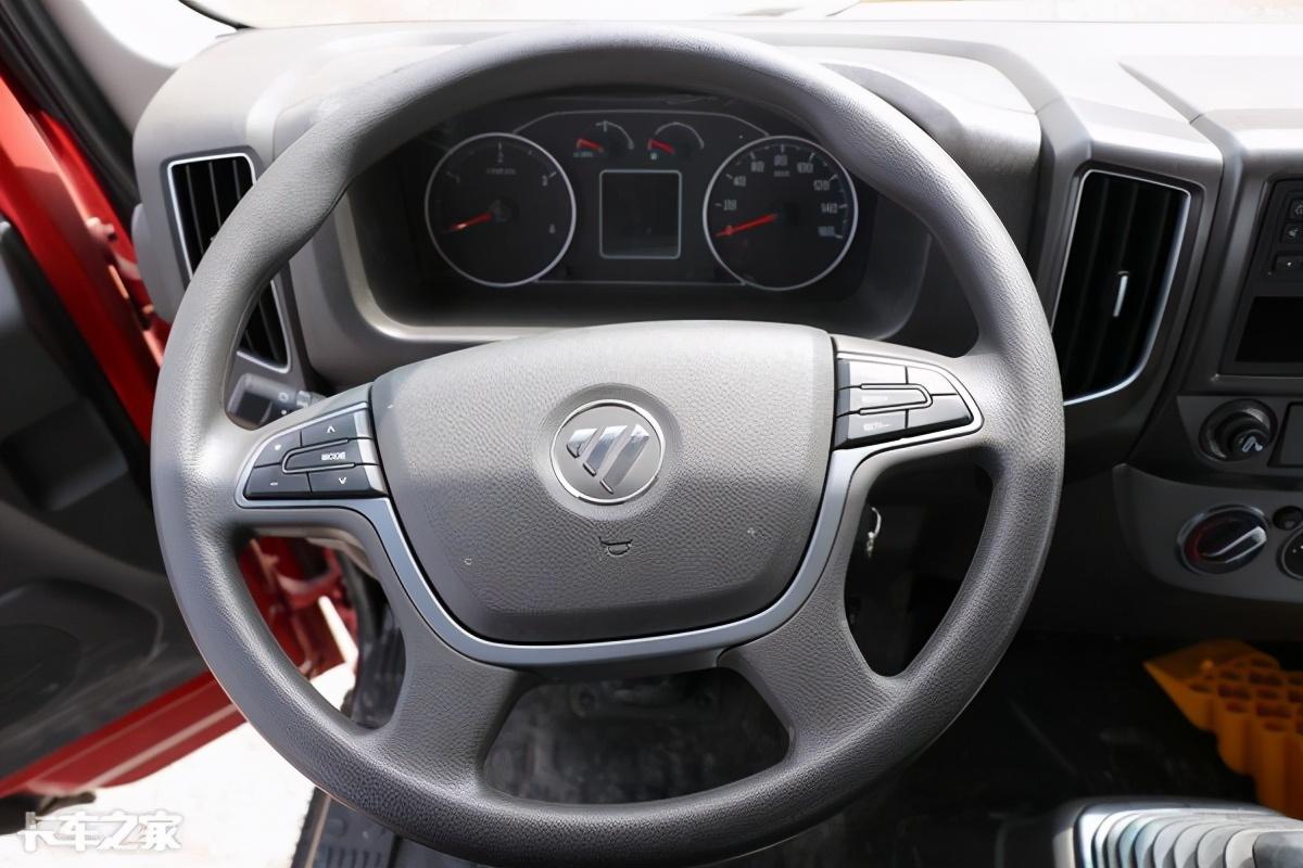 多功能方向盘采用四幅式设计,左侧为多媒体控制按键,右侧为定速巡航控制按键,使驾驶时的操作更加安全便捷。仪表盘依旧是熟悉的奥铃特色仪表盘,整体更加规整简洁,视觉效果不错的同时也更加易于读数,同时仪表台中央配备有一块行车电脑,显示信息更加丰富,方便驾驶员了解车辆运行状况。
