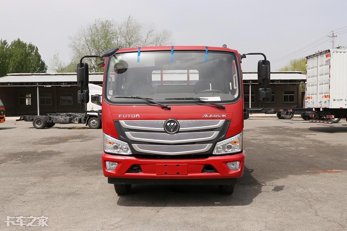 实拍车型车身尺寸达到了6995x2550x2440mm,轴距达到3800mm,配合宽体驾驶室,让整个车身看上去更加的霸气。前脸依旧是奥铃家族化设计,看上去相当整洁。前档下方黑色饰板与玻璃形成很好的整体,降低了车辆视觉中心,让车辆看上去更加美观。中网依旧采用奥铃经典的银色H型中网,中央镶嵌有福田logo,整体视觉效果相当精致。