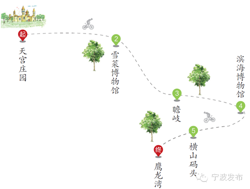 骑行路线: 天宫庄园→雪菜博物馆→瞻岐→滨海博物馆→横山码头→鹰龙湾