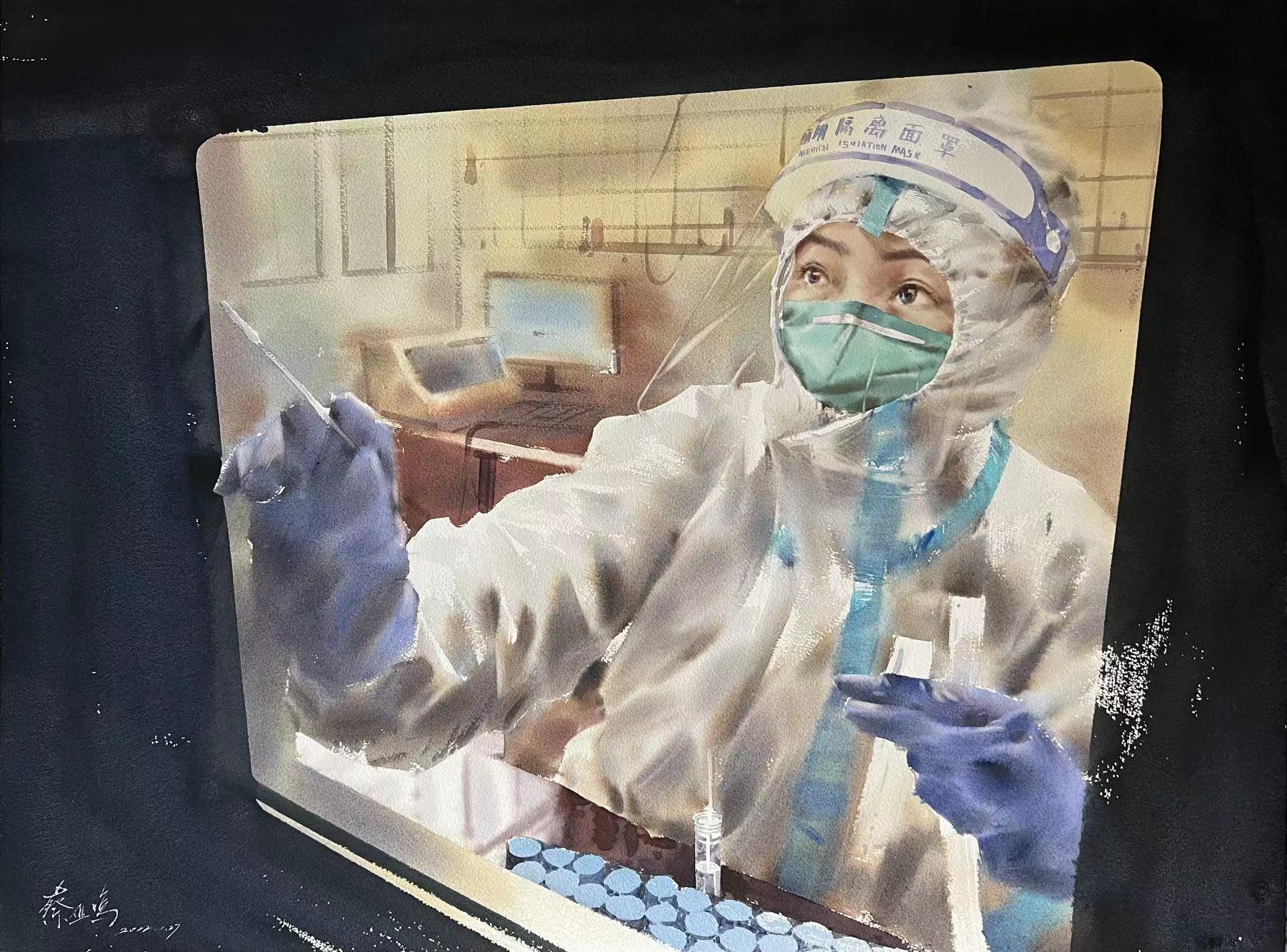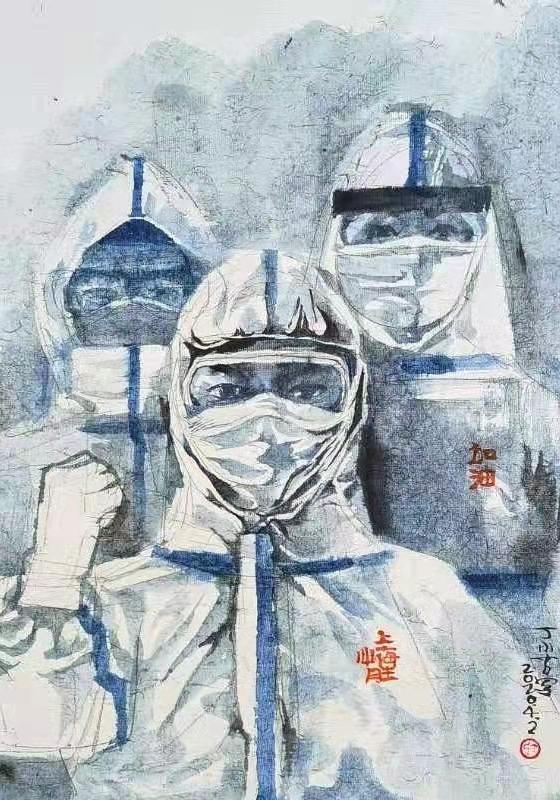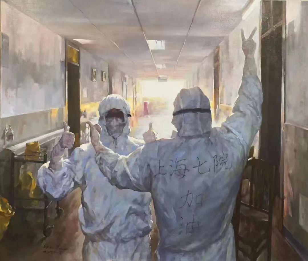 据统计,截至5月11日,上海市美术家协会的“云·美术馆”组织发布了二十期“艺起前行︱用心 用情 用爱——上海市抗疫主题线上美术展”,共展出255位画家的371幅作品,歌颂了抗疫各条战线上的平凡英雄,其中包括奋战一线的医护人员、驰援上海的各地医务工作者等。