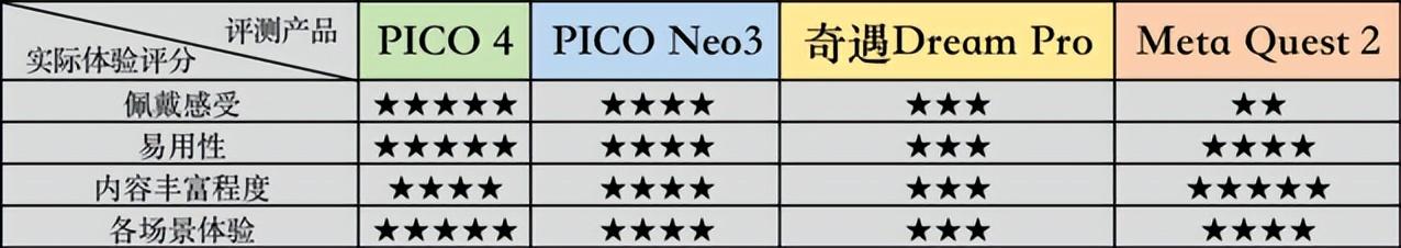 综合来看,在硬件配置纬度,PICO 4无论是从产品的外观设计和佩戴舒适度,还是“硬核”的基础参数及性能表现,都是四款产品中的最优选, 在大多数的配置上也可以与Meta新一代企业级产品——Quest Pro相媲美 。