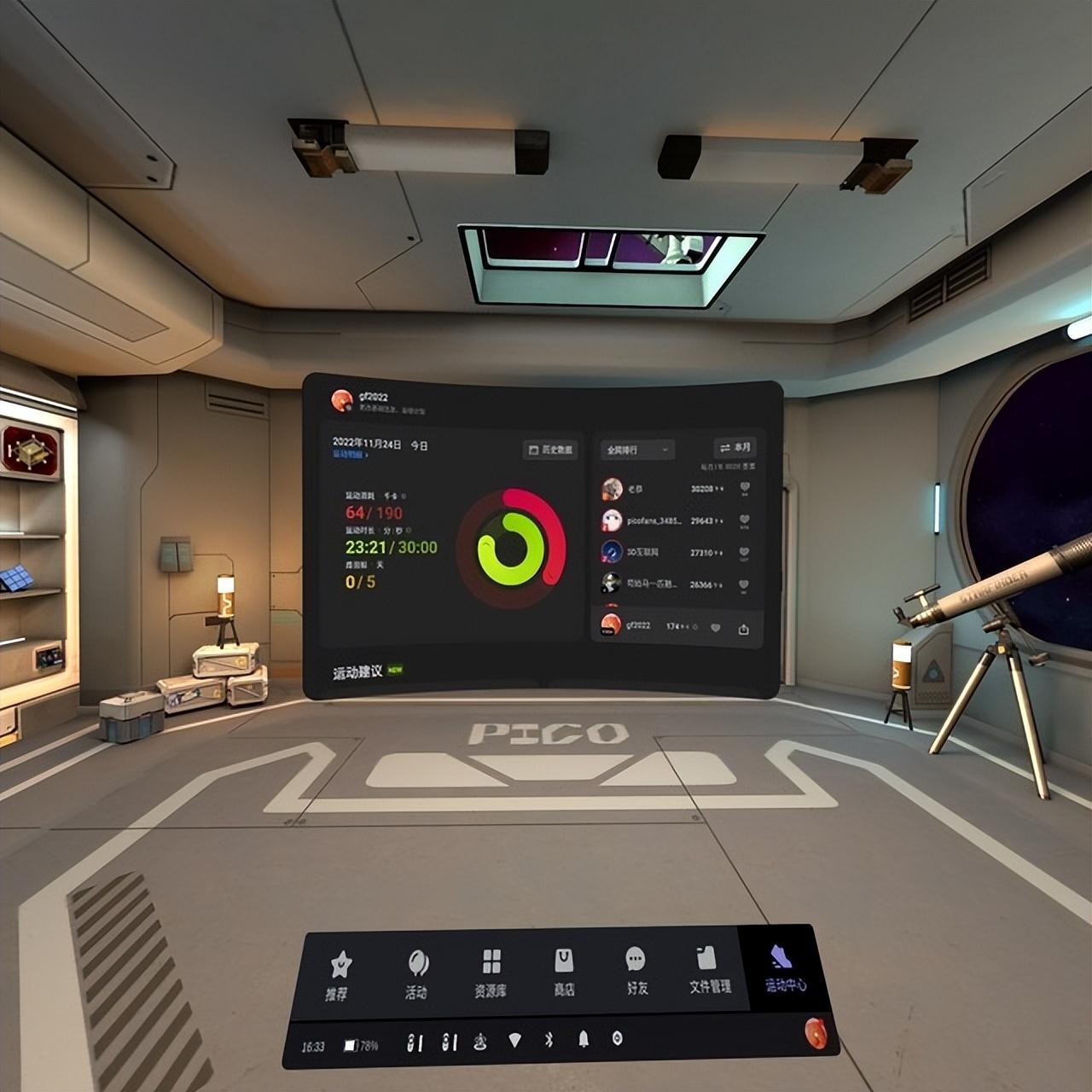 通过 PICO自研的CalSense体能算法 ,我还可以在运动中心内查看卡路里燃烧量,并且它还支持运动数据可视化、多端数据查看,从而实时了解健身效果,从而帮助我做到更科学运动健身;同时,手柄上新增的截屏键与运动排行等功能还能更快捷地进行截图/录屏,帮助我记录VR世界里的精彩瞬间,还可以和好友进行PK与联动。 这些“钻研”都是PICO拓宽VR使用场景很好的一次“尝试” 。
