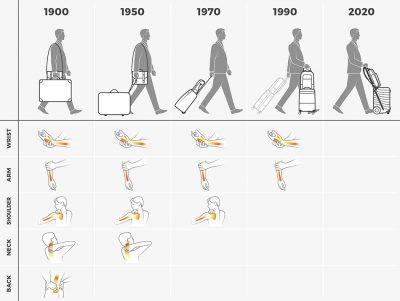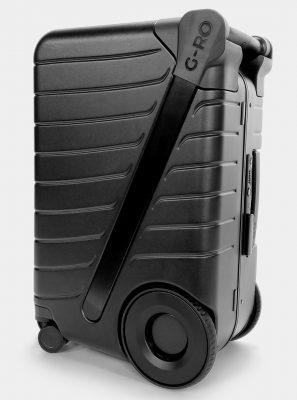 G-RO SIX 对传统的行李箱大都是硬壳包的设计进行改进。比如它的手柄设计是由一条斜穿在侧面的条带,形成的棱角构成的,而不是大多数行李箱的垂直手柄,而且它的 66° 可伸缩手柄经过优化,便于携带。灵感来源于手推车和婴儿车的一个细节:通过让你轻松地推而不是拉行李,减轻了手腕和肩膀的疲劳。