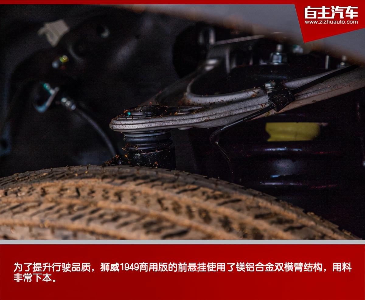 为了提升行驶品质,狮威1949商用版的前悬挂使用了镁铝合金双横臂结构,用料非常下本。