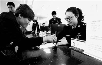 “您好,请问您办理什么业务?”刚进大厅,一位穿警服披绶带的女警官笑脸相迎,记者注意到绶带上的字表明她是一位“导办员”。