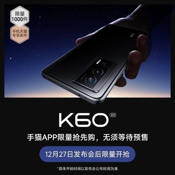 【手机中国新闻】12月23日上午,备受用户关注的Redmi新机Redmi K60系列正式官宣,其将于12月27日晚19点正式发布。就在这一消息公布后,小米天猫官方旗舰店也同时开启了新机